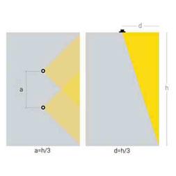 فاصله افقی بین منبع نور و دیوار باید تقریباً یک سوم ارتفاع دیوار باشد.